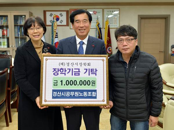 경산시공무원노동조합(위원장 박미정)이 지난 12월 9일 지역 인재 육성을 위해 써달라며 장학 기금 100만 원을 (재)경산시장학회에 기탁했다.