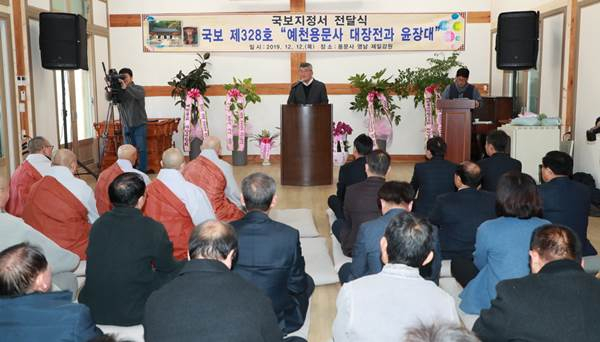 천군(군수 김학동)은 지난 12월 12일 오전 11시 예천 용문사에서 국보 제328호로 지정된 ‘예천 용문사 대장전과 윤장대’의 국보지정서 전달식을 가졌다.
