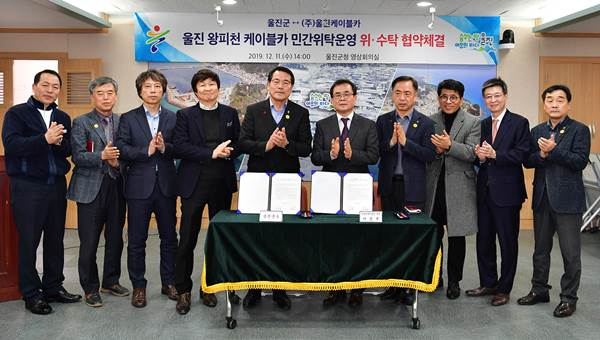 친절 울진군(군수 전찬걸)은 지난 12월 11일 울진의 랜드 마크가 될 울진 왕피천 케이블카 운영과 관련 ㈜울진케이블카와 민간위탁운영 위·수탁협약을 체결했다.