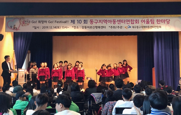 대구광역시 동구 지역아동센터연합회(연합회장 정경택)는 14일 강동어르신행복센터 강당에서 2019년 제10회 동구 지역아동센터 연합회 어울림 한마당 – 신나go! 희망차go! Festival 발표회를 개최하였다.