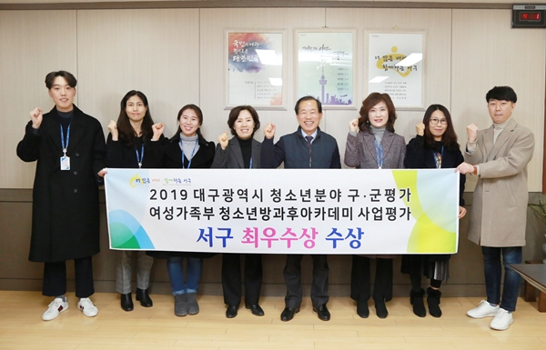 대구 서구청(구청장 류한국)은 대구시 주관 ‘2019년 청소년 선도・보호 추진상황’과 여성가족부 주관 ‘2019년 청소년 방과후아카데미 사업평가’에서 각각 최우수상을 수상했다고 19일 밝혔다.