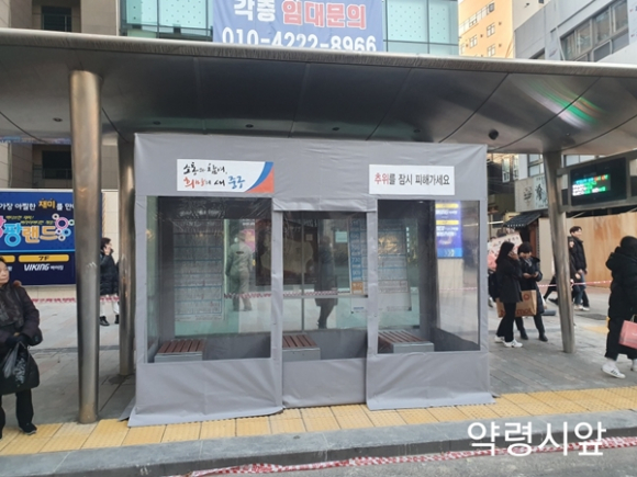 | ↑↑ 버스정류장에 설치된 추위대피소 |