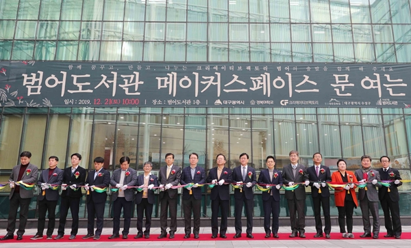 수성구(구청장 김대권)는 지난 21일 대구시 공모사업인 '대구형 메이커스페이스 구축·운영사업' 참여기관으로 선정돼 범어도서관 1층에 메이커스페이스(크리에이티브팩토리 범어)를 구축하고 시범운영을 거쳐 개소식을 개최했다.