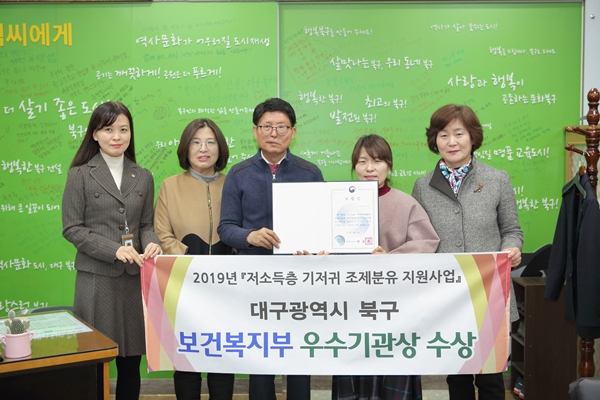 대구 북구청(청장 배광식)은 보건복지부 주관 ‘2019년 저소득층 기저귀 조제분유 지원사업’의 우수기관으로 선정되어 보건복지부장관 표창(기관)을 받았다.