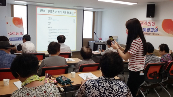 치매예방교실 ‘아라리요’ 는 만 60세 이상 치매진단을 받지 않은 지역주민을 대상으로 주 1회 치매예방체조, 두근두근뇌운동, 실버요가 등 치매를 예방하고 기억력을 향상시켜 치매위험을 감소시키기 위한 활동을 제공하고 있다.