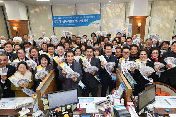 대구시 중구(구청장 류규하)는 설 명절을 맞아 전통시장의 활성화를 위해 14일 오전 11시 대구은행 중구청 지점에서 구청직원, 중구의원, 협의단체 회원 등이 참석한 가운데 ‘전통시장 온누리 상품권 구매 촉진 행사’를 가졌다.