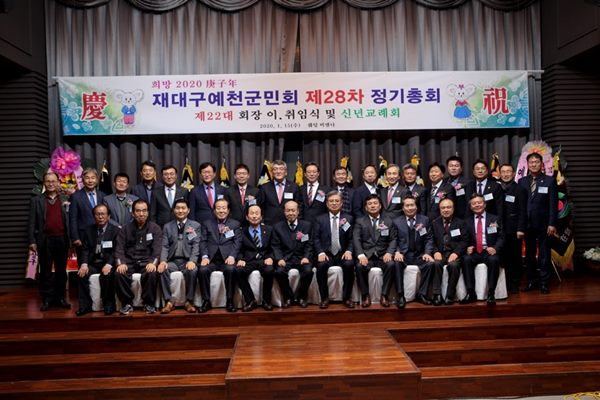 재대구예천군향우회(회장 신장희)는 지난 1월 15일 오후 6시 30분 대구 웨딩비엔나 4층 컨벤션홀에서 ‘제28차 정기총회’에서 ‘회장 이·취임식 및 신년교례회’ 를 가졌다.