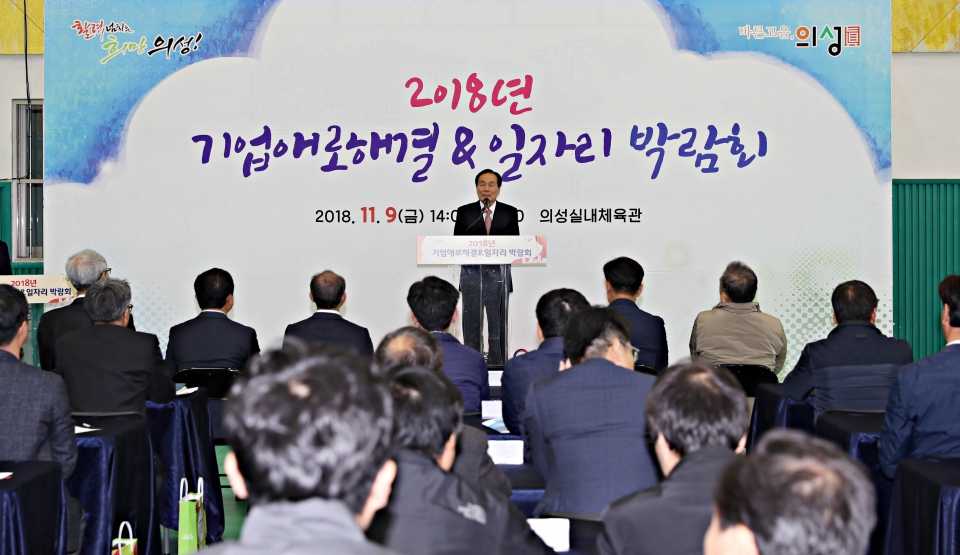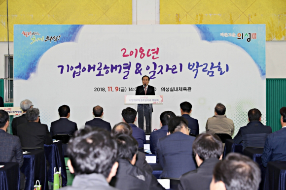 의성군(군수 김주수)은 기업의 애로사항을 해결하고, 일자리를 희망하는 구직자에게 취업 기회를 제공하기 위해 9일 의성 실내체육관에서 '2018년 의성군 기업애로 해결&일자리 박람회'를 개최했다.