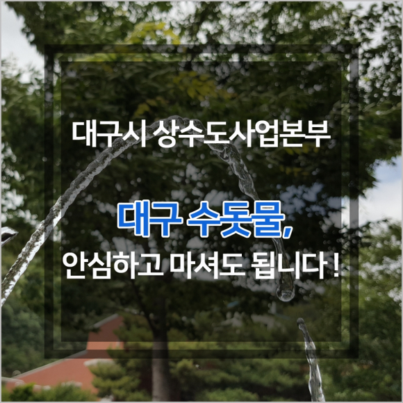 대구시 김문수 상수도사업본부장은 “ 수환경 변화에 대응하여 실시간 수질 모니터링을 통한 고도정수처리 시설을 최적으로 운영하여 대구 수돗물을 안전하게 공급하고 있으니, 시민들께서는 우려하지 않으셔도 됩니다”라고 말했다.