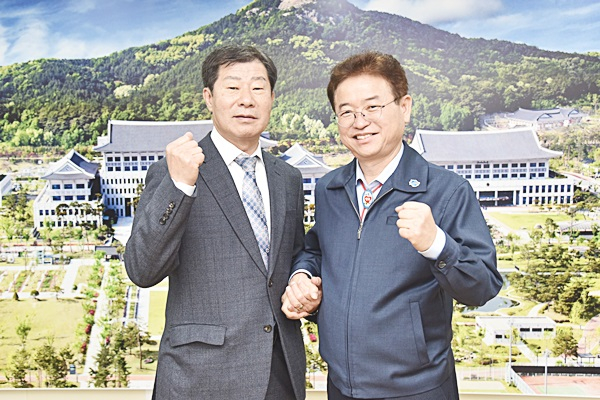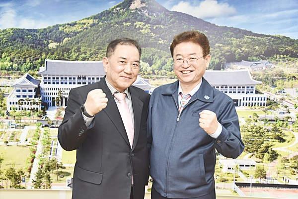 ↑↑ 이철우 경북도지사와 이두환 재대구포항향우회 회장(오른쪽)