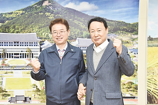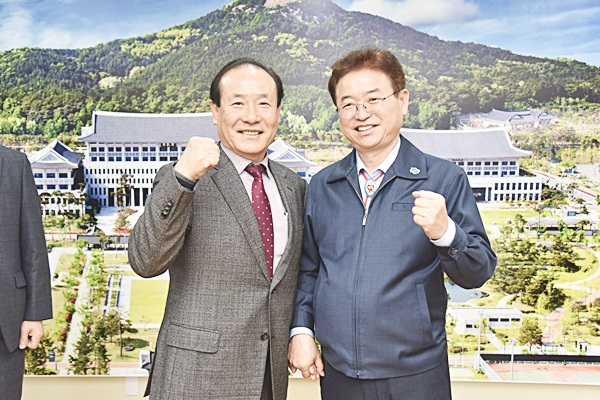 ↑↑ 이철우 경북도지사와 조동희 재대구경북도민회 회장(왼쪽)