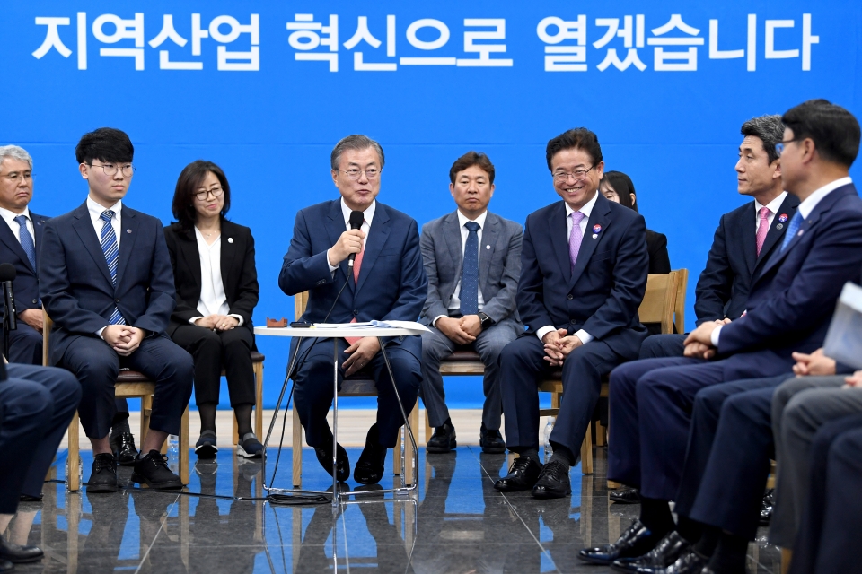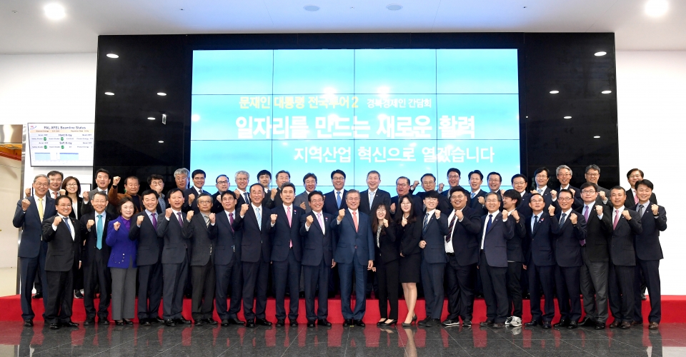 경상북도는 지난 8일 포항 가속기연구소에서 문재인 대통령과 지역경제인들이 참석한 가운데 ‘지역산업 혁신을 통한 일자리 창출과 지역경제 활력’이라는 주제로 지역경제 현안 논의를 위한 간담회를 가졌다고 밝혔다. 문재인 대통령의 이번 방문은 지난달 30일 전북을 시작으로 진행된 ‘전국투어’의 두 번째 지역방문으로 지역에 활력을 불어 넣고 지역이 발전전략을 주도적으로 추진할 수 있도록 뒷받침하기 위해 마련됐다.