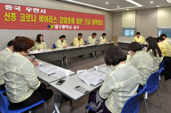 대구광역시 남구청(구청장 조재구)에서는 지난 29일 오후 4시 남구보건소에서 신종 코로나바이러스 감염증(우한 폐렴) 대응 강화를 위한 긴급대책회의를 개최하였다고 밝혔다.
