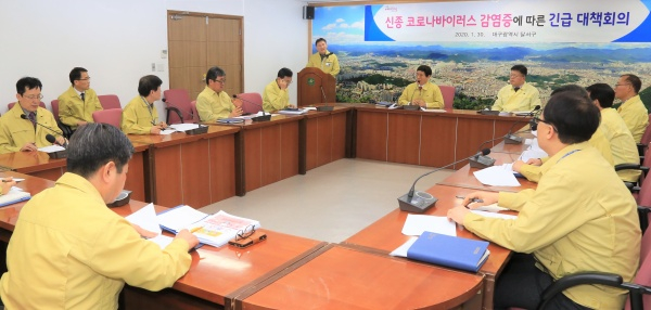 대구 달서구(구청장 이태훈)는 1월 30일 오후 5시 30분 5층 회의실에서 신종 코로나바이러스감염증 발생에 따른 긴급대책회의를 개최하고 분야별 대책을 점검했다.