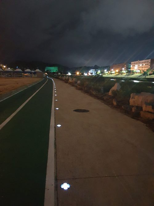 경북 영주시에서 시민들의 휴식공간이자 소통공간인 서천둔치에 설치한 자전거도로 야간조명이 시민들에게 큰 호응을 얻고 있다.