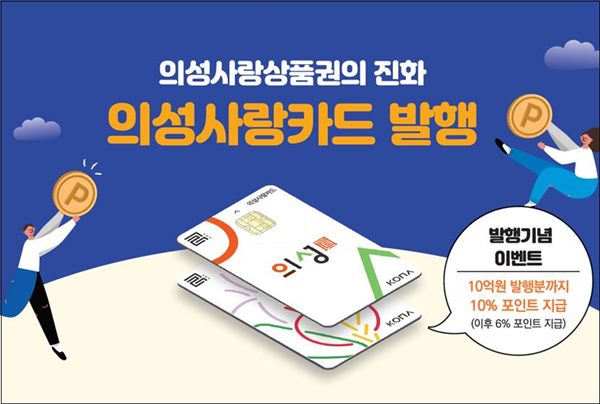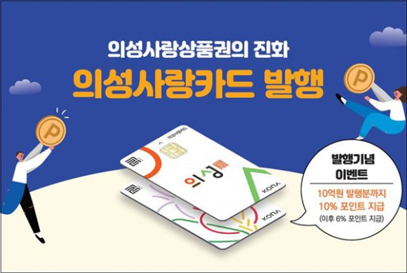 의성군(군수 김주수)이 2월 10일부터 지류형(종이형) 상품권을 보완하고 카드결제의 편의성을 도입해 지역화폐 유통을 활성화하고자 카드형 지역화폐인 의성사랑카드를 발행한다.