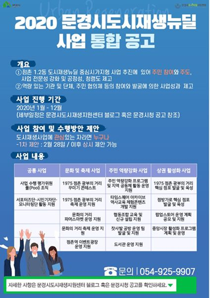 문경시 도시재생 지원센터는 지난 1월 30일, 2020년 문경시도시재생뉴딜사업 통합 안내 공고를 발표했다.