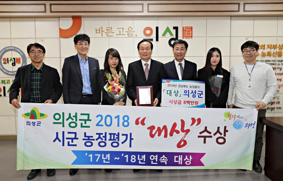 의성군(군수 김주수)은 지난 9일 경북도청 동락관에서 열린 제23회 농업인의 날 기념행사에서 ‘2018년 시군 농정평가’ 대상을 수상했다.
