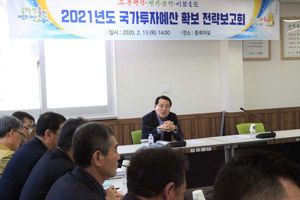 친절 울진군(군수 전찬걸)이 2021년도 국가투자예산 확보를 위해 지난 2월 13일 전 실과소장이 참석한 가운데 ‘2021년도 국가투자예산 확보전략 보고회’를 개최했다