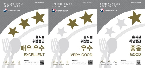 지난 2017년부터 시행된 ‘음식점 위생등급제’ 는 음식점 조리장 및 객석·객실 청결실태, 식자재 관리, 종업원 위생관리수준 등 92개 항목에 대해 한국식품안전관리인증원의 엄격한 심사와 객관적 평가를 거쳐 평가점수가 90점 이상 이면‘매우우수(별 3개)’, 85~90점은‘우수(별 2개)’, 80~85점은‘좋음(별 1개)’의 3단계로 등급을 지정·공개하는 제도이다.
