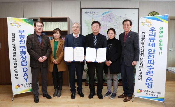 대구 서구청(구청장 류한국)는 지난 13일 관내 20개소 부동산중개사무소를 안전파수꾼으로 지정하여 동네 곳곳의 위험 요소와 생활불편 사항을 발굴해 사고를 예방하는 ‘우리동네 안전파수꾼’을 운영한다.